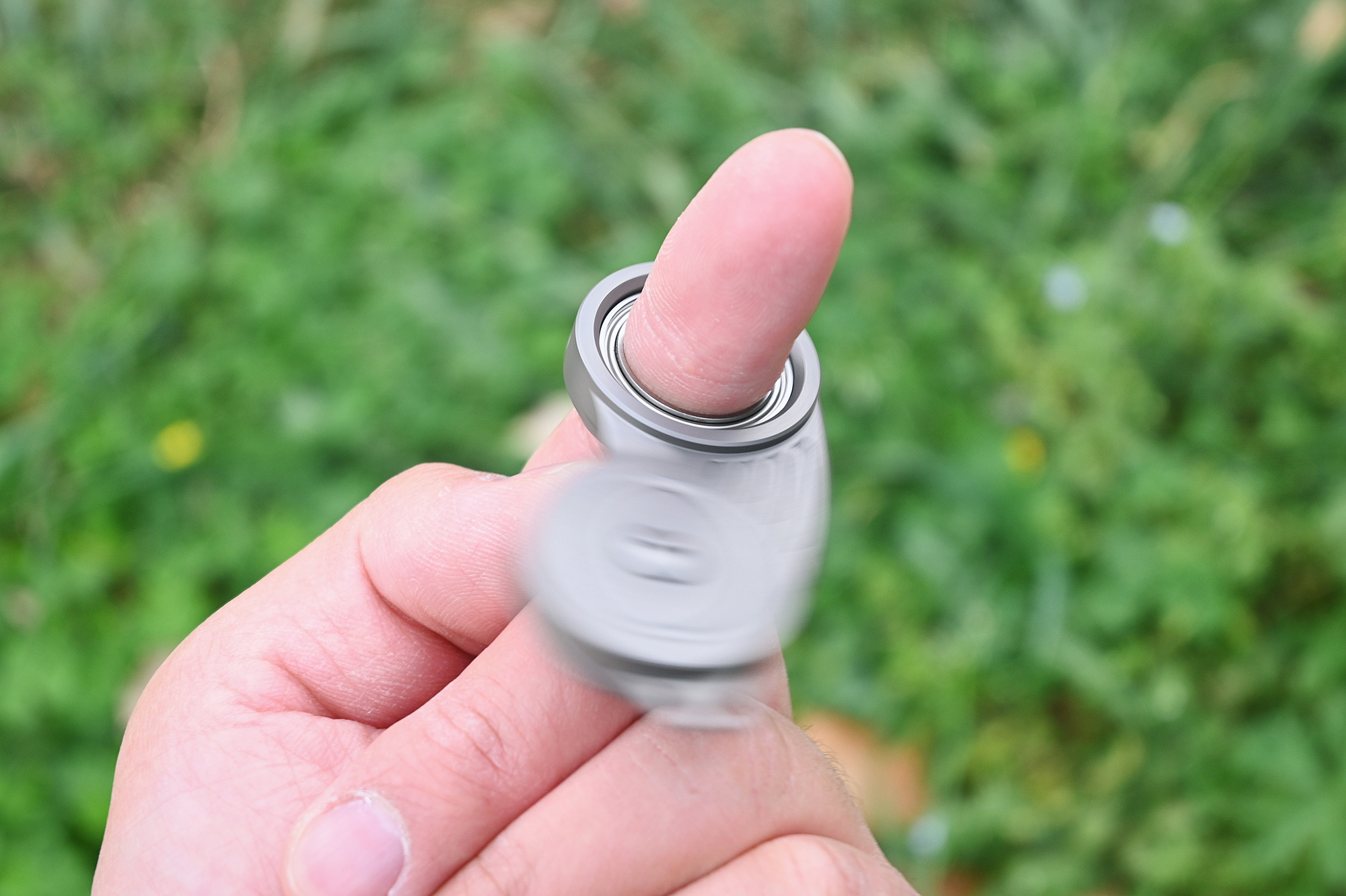 别看主体虽小,但造型独具特色,且非常精致。一旁的套环为高速指环,可以嵌套在手指上高速旋转;而对称另边的圆饼带有数字刻盘,拨动时既能啪啪解压,也可猜数比数,非常有意思。