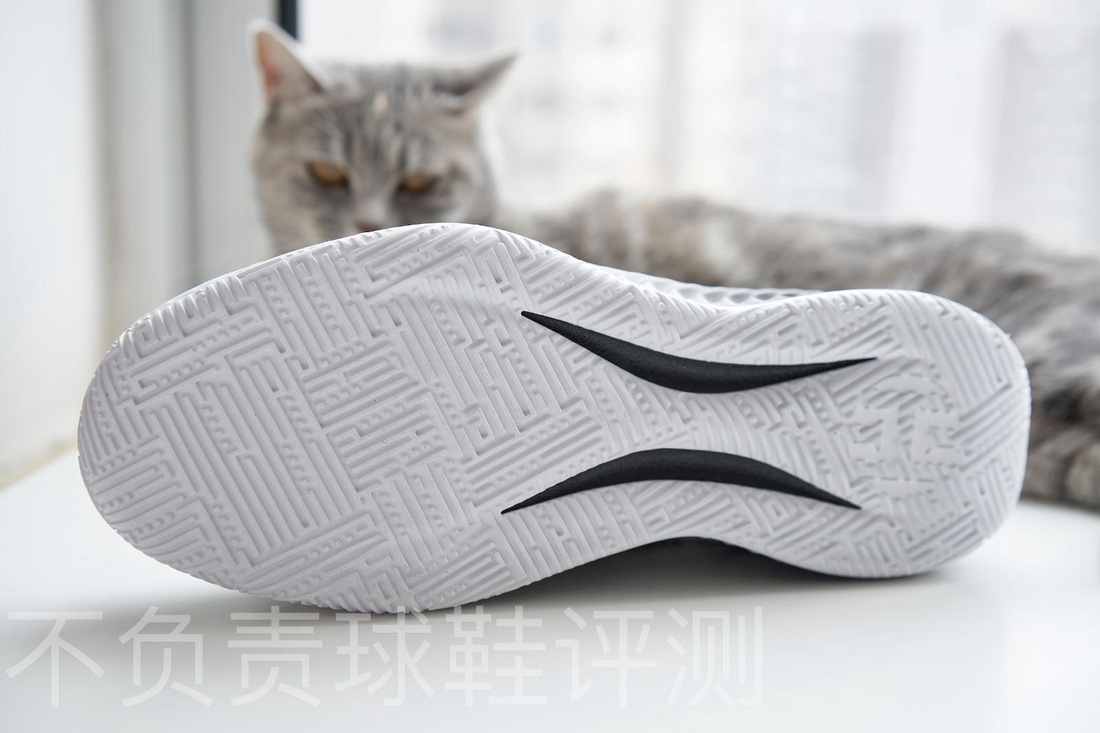 另外,流线的外底圆弧也塑造出了防侧翻,本来就很宽广的外底就让稳定性非常良好,防侧翻更是让变向的时候增加了安全感,坚实的后跟TPU也有很好的固定效果。上代有的不跟脚问题,这代也改善非常多,基本上鞋带绑好,穿上厚袜子,并不太会出现不跟脚的问题。所以整体来说,非常意外的,看起来很乾净普通的一双球鞋,其实上脚后实战却非常强悍,这是我购买的时候没预料到的!