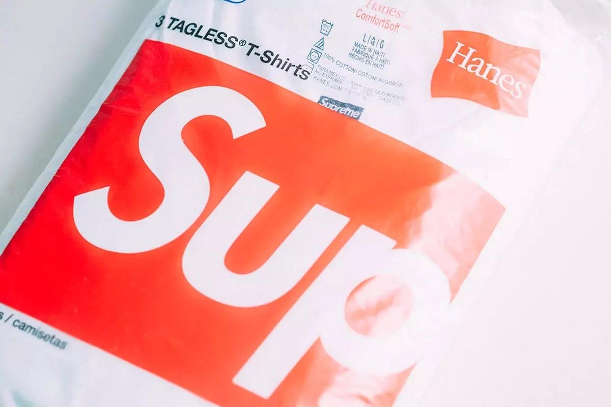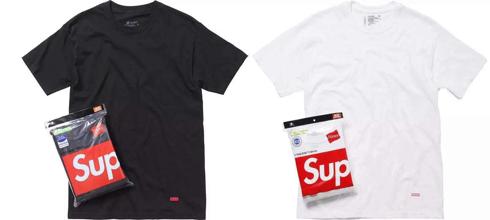 汗擦完了,总得要回家换件衣服才能和妹子出去约 Pao 的呀,最后一款: Supreme x Hanes Tagless Tee 3 Pack (均价: 350 )