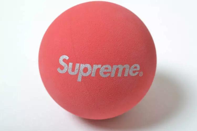 没想到 Alan 这么蠢吧,给大家说个球,但是大家想想,你坐在办公室、教室、家里看电视时,是不是都想拿点什么或者抱着点什么(我想要个女朋友 T T ),这个球可以满足这些无耻的要求,高弹回力球,捏着就像少女的...自己想象一下吧, Supreme 很贴心地推出了两个颜色,目的就是为了能坑多点钱, 60 块左右的价格,玩个球还是划算的啊。