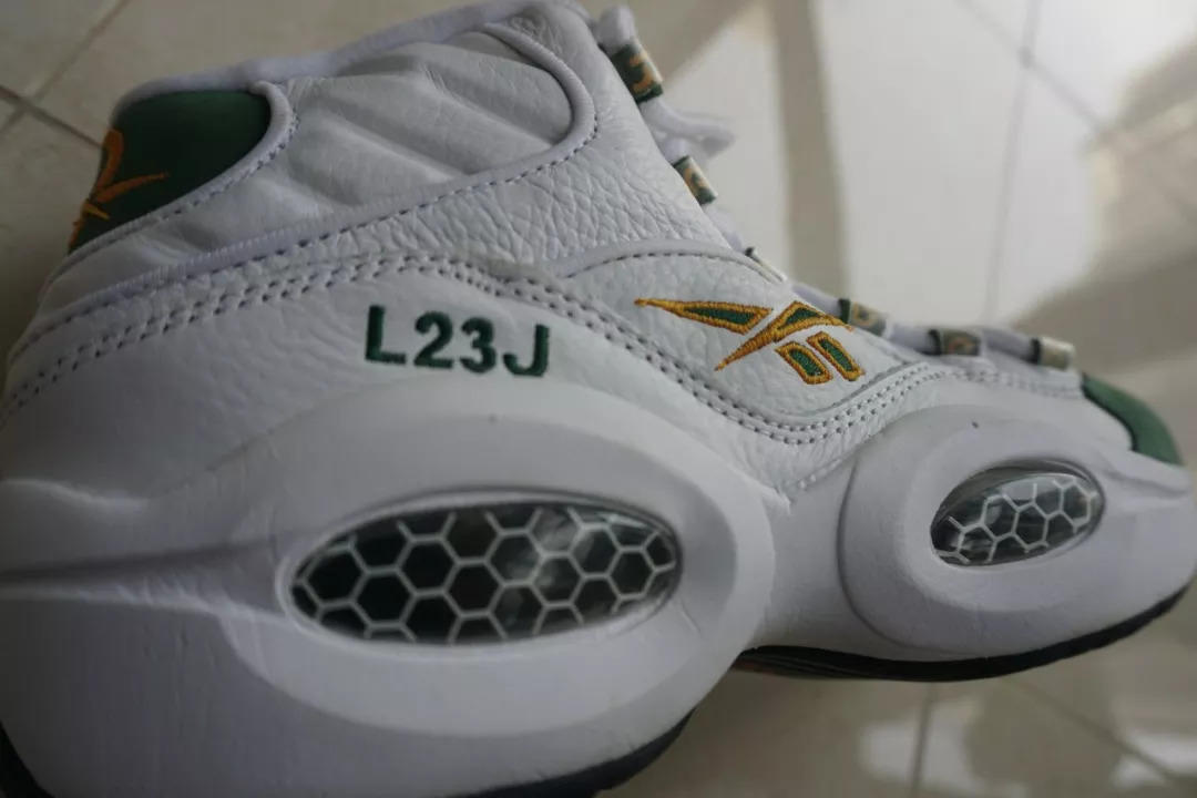 我平时特别喜欢球鞋,打篮球的人大部分喜欢球鞋。我最喜欢的是艾弗森,最不喜欢的是詹姆斯,不是因为詹姆斯技术不好,只是个人对球员的喜好。这双鞋是艾弗森的Q1,他是詹姆斯版本的,鞋子上有詹姆斯的logo跟名字,所以这双鞋子是我最喜欢的球员跟最不喜欢的球员的一双鞋。