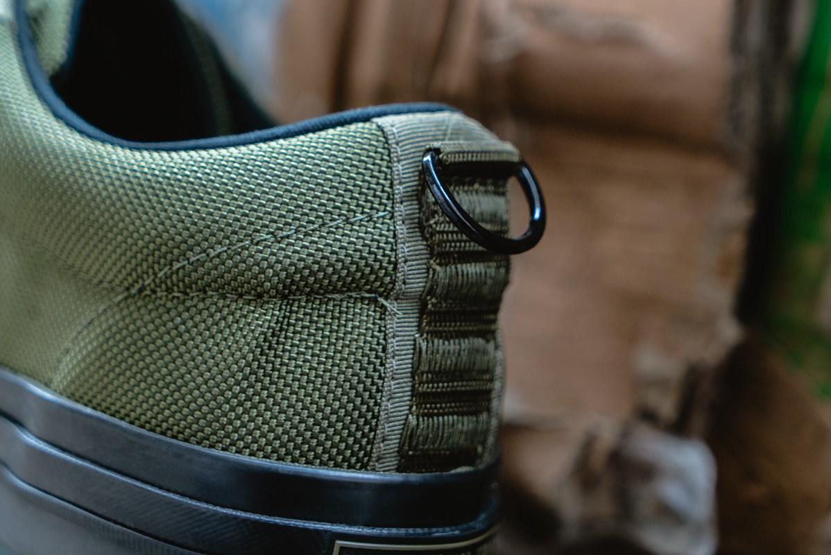 双方为系列展现出黑色,橄榄色和白色三种颜色,采用轻便耐磨的 CORDURA® 面料,有着军装风格的针织鞋带,鞋跟的 D 型吊环等,完全融合军装风格。