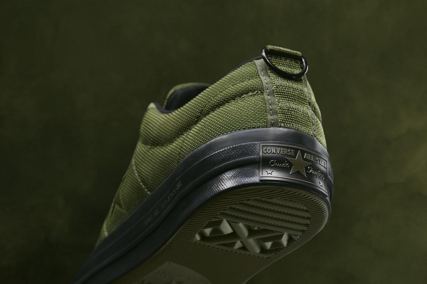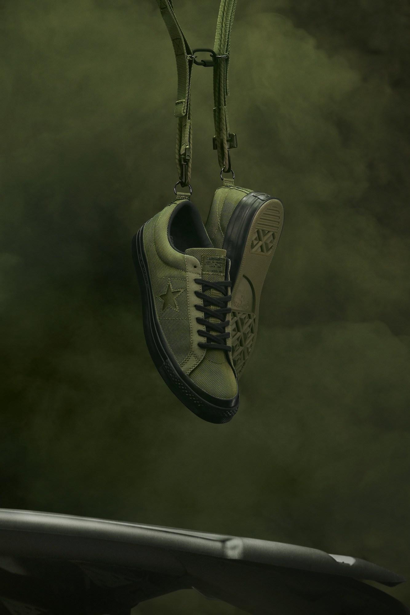 Carhartt WIP 在这次合作中采用与品牌工装风格一致,将现代设计感和穿着实用性融合到一起的理念,并从硬汉形象的军旅包和街头感十足的细节汲取灵感,将 Converse 经典的 One Star 进行一番重塑。