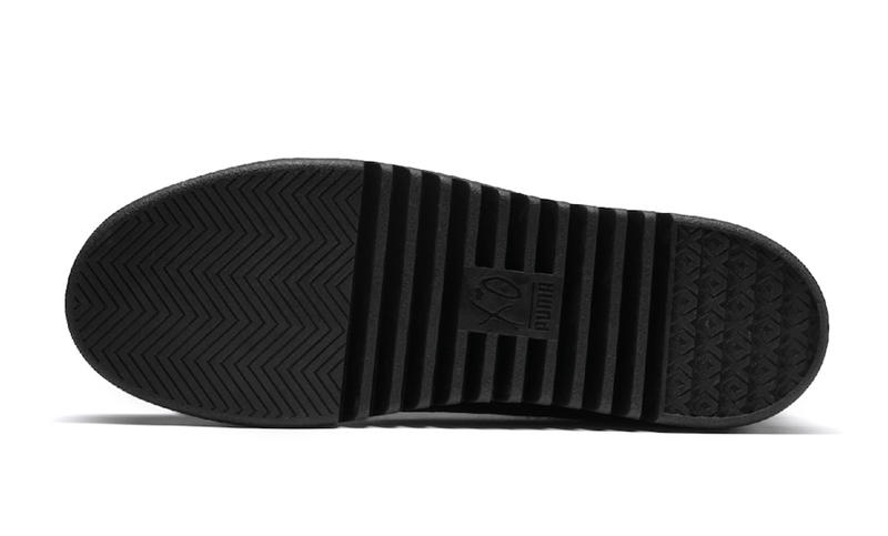 鞋底为加厚设计,使这种松糕厚底设计不再是 PUMA 女鞋专属,还有夸张的锯齿底纹设计,更显前卫独特。首款纯黑配色与高规格的用料相得益彰,更显质感。