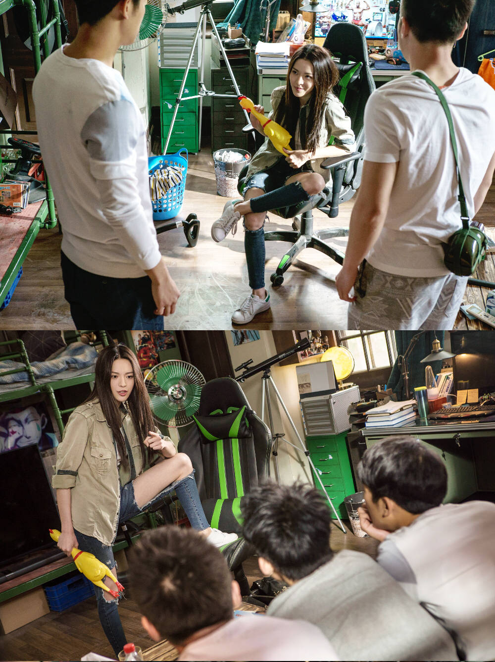 在片中这个令人印象深刻的活泼女孩脚下踩的是清新的阿迪小白鞋