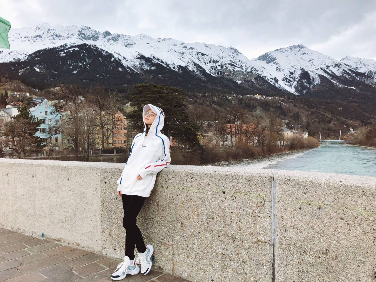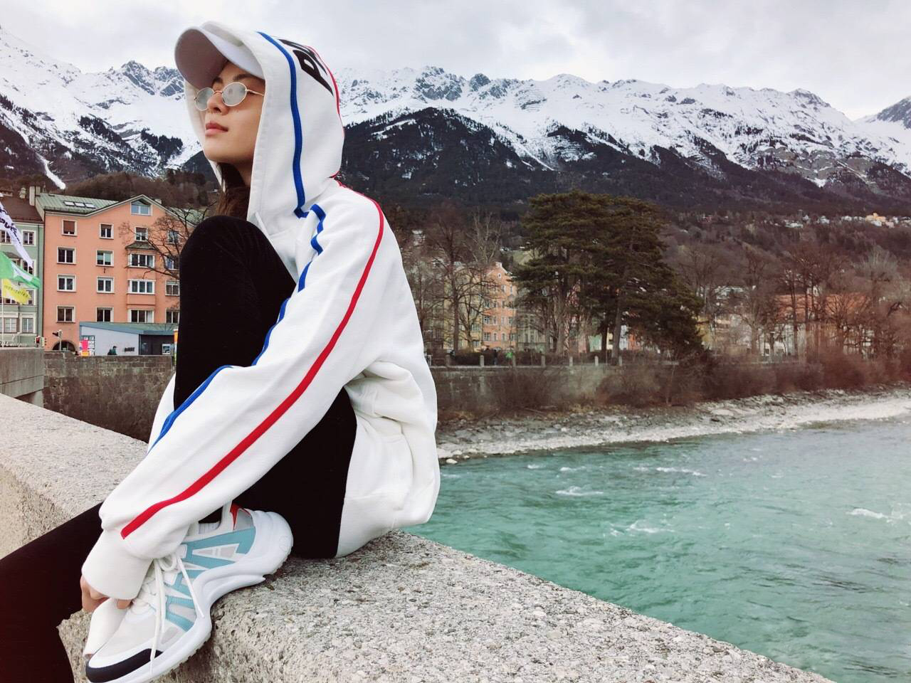 她的诸多打扮方式,也暴露了她sneaker girl的个性,前不久在奥地利因斯布鲁克的旅行摆拍