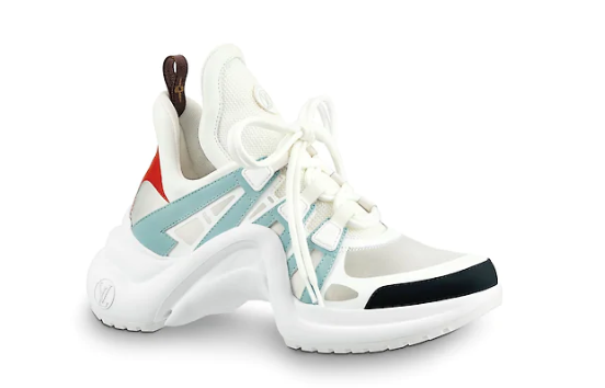 清新并且带有嘻哈风的白色运动拉链衫,显腿的黑色紧身裤,最引人注目的就是脚上的Louis Vuitton SS18,带有Balenciaga Tripe S的复古特点,有极具有未来感,再适合他不过了
