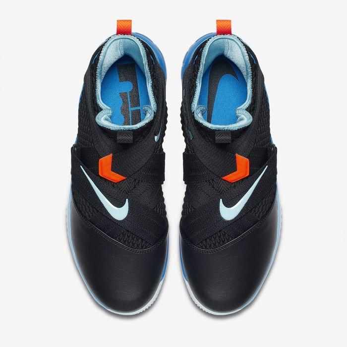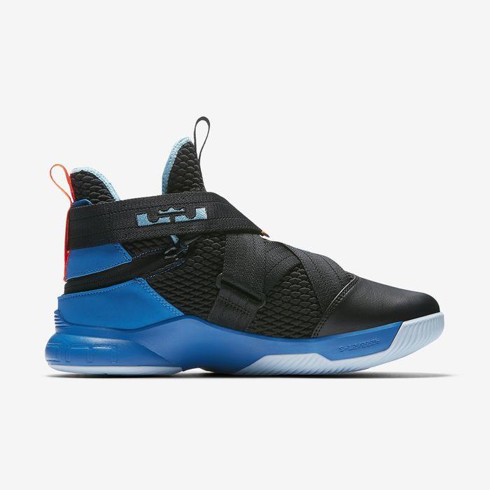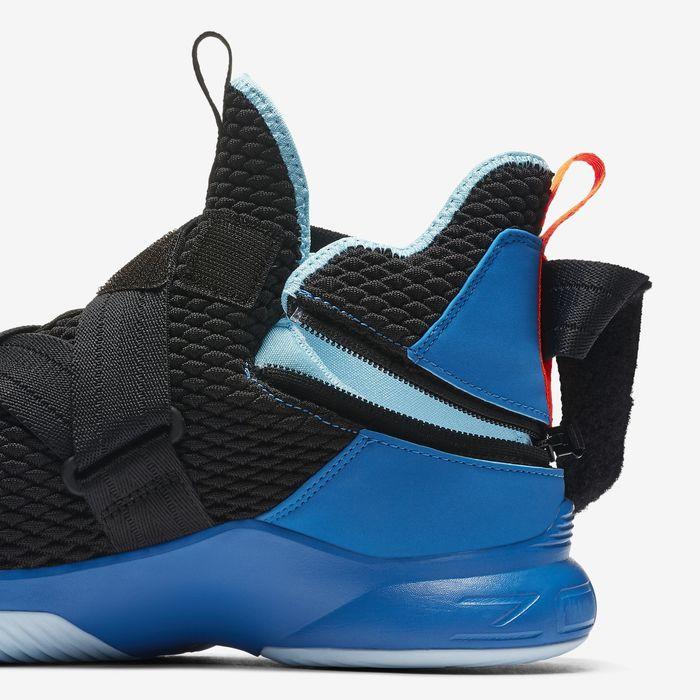 Nike LeBron Soldier系列鞋款再添FlyEase版本,此番实现简易穿脱的是LeBron Soldier 12。眼前这双选择黑色鞋身搭配蓝色内衬、后跟以及中底,辅以橙色点缀细节,在保留固定带设计的同时于后跟处加上拉链细节。款式货号AV6372-001,现已发售。