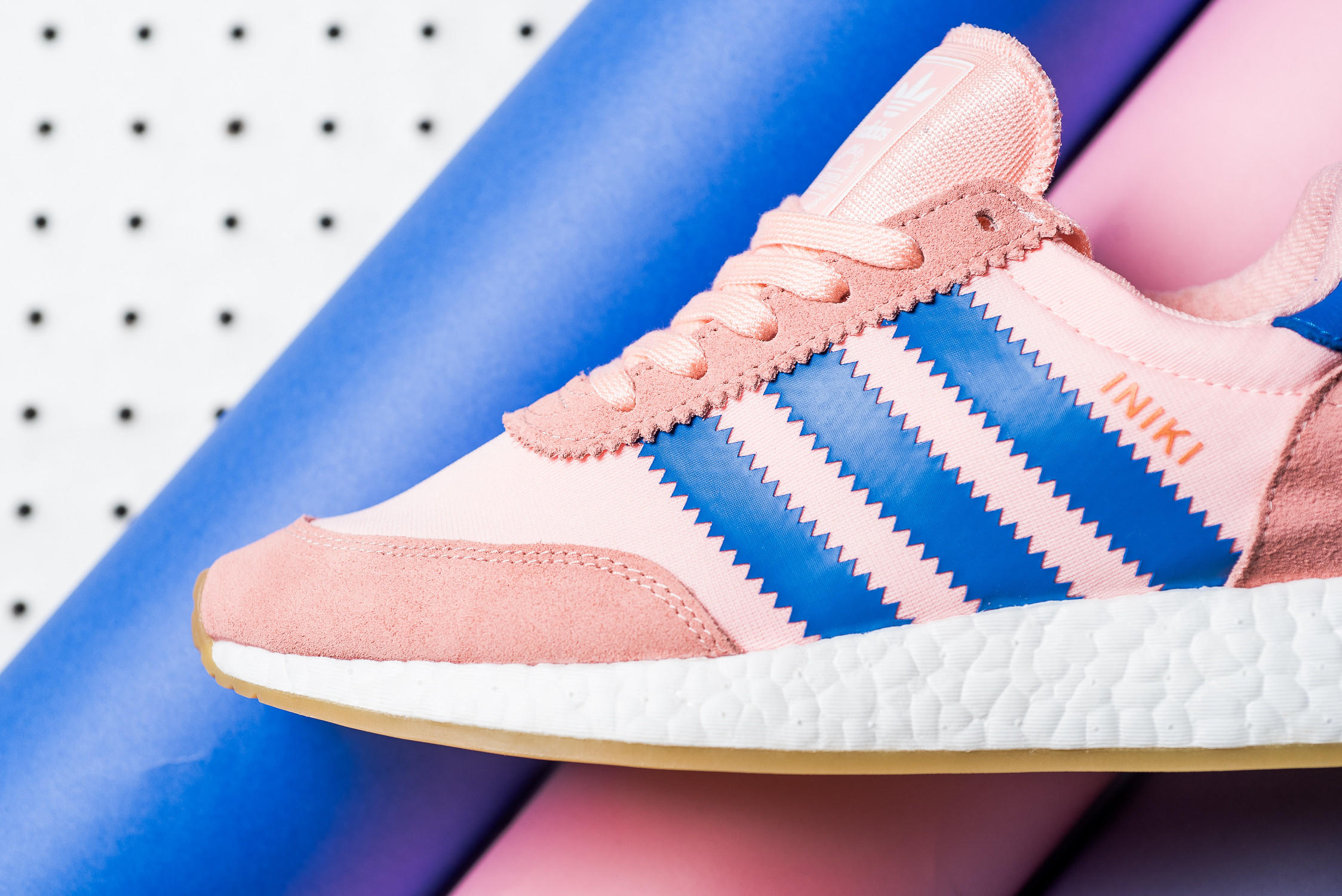 adidas Originals Iniki Runner BOOST 将复古跑鞋与代表技术革新的 BOOST 中底完美融合,鞋款采用麂皮与氯丁橡胶结合制作鞋身,保留了复古跑鞋的风貌,搭载全掌白色 BOOST 中底。此番为女生带来的新配色采用珊瑚红和蓝色搭配制作,复古中透露着时尚,现已发售,货号 BA9999。