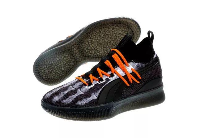 PUMA回归篮球领域后带来的Clyde Court,就引发了不少人关注,而近日更是释出了全新配色。黑色为主色调,为整款鞋营造出一股神秘感觉,橙色鞋带的点缀让人不禁想骼即将到来的万圣节。整款鞋最大亮点无疑是鞋面X光为灵感的骨骼图案,相当吸睛。10 月 30 日也将正式发售,万圣节风味浓厚的鞋款你怎能不爱。