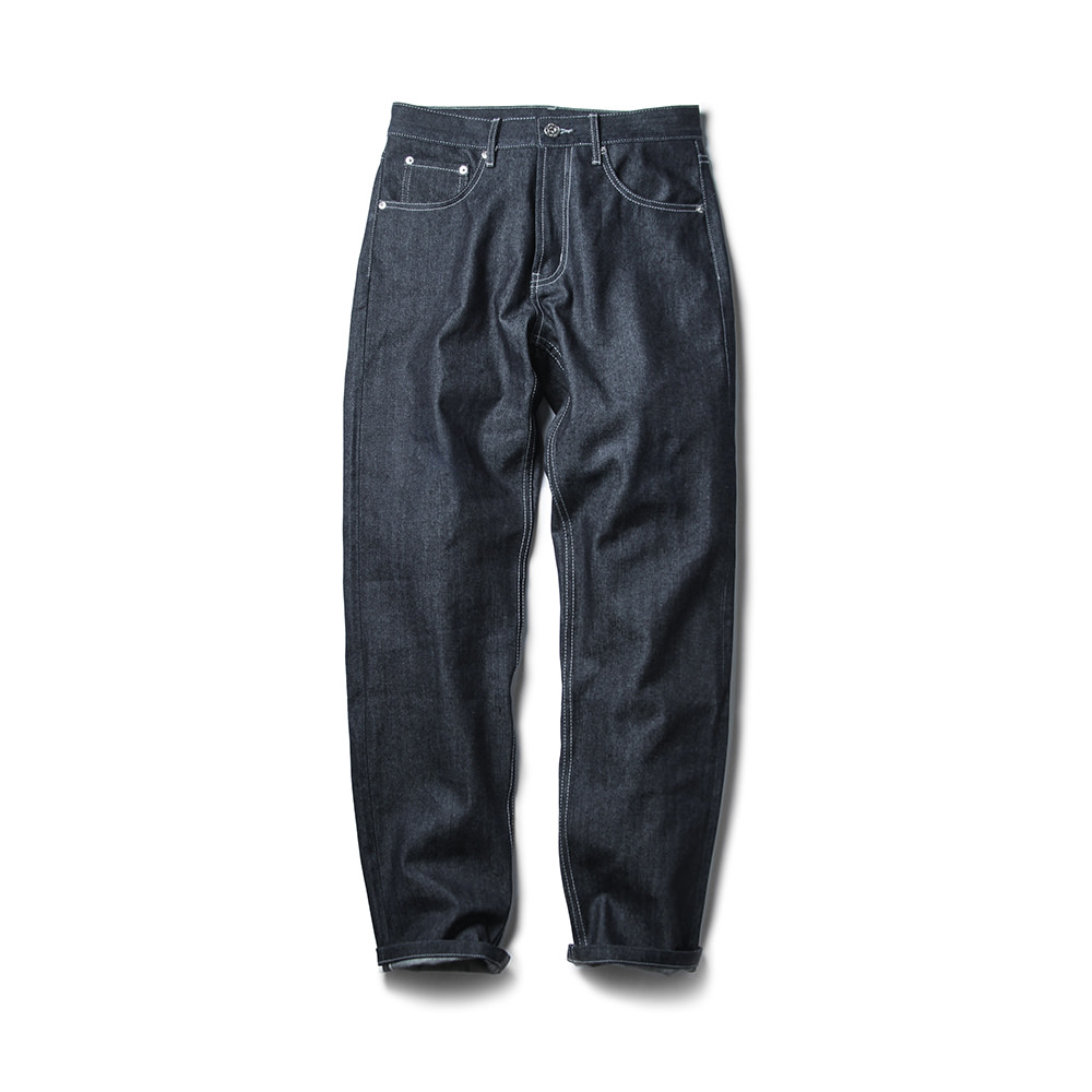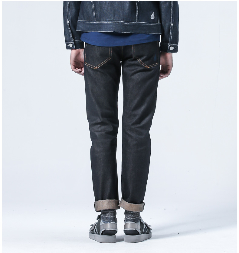 采用经典5-pocket denim 设计。indigo植物染料着色,量身定制直筒裤型。以撞色车线与高品质白耳锁边构造牛仔裤的结构感。后侧口袋品牌标签作为细节的点缀。整体简单的剪裁塑造极佳上身效果。