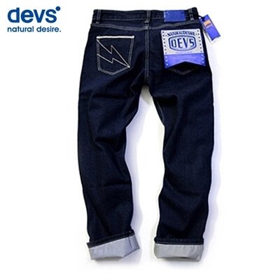 13.75盎司赤耳厚重未脱浆土耳其干丹宁有机面料,蓝色袋花,纯银五金,意大利制造。养牛绝品,落色效果极佳!STRAIGHT ALF裤型为宽松直筒,中腰,纽扣门襟。搭配板鞋、高中低帮的皮靴和工装靴皆可。