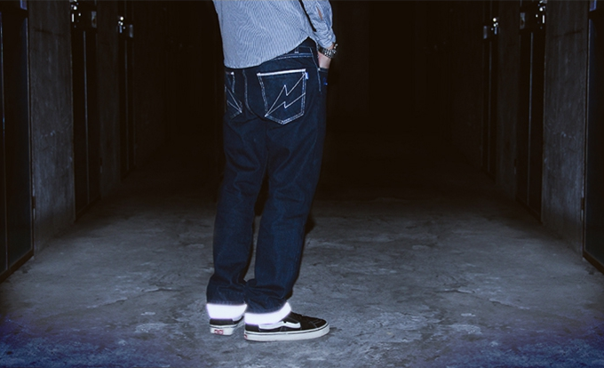 采用了经典直筒裤型,裤脚处注入了3M反光元素,全身车线均使用“反光线”缝制。死飞、滑板爱好者来说,夜晚兼具安全与炫酷的装备。