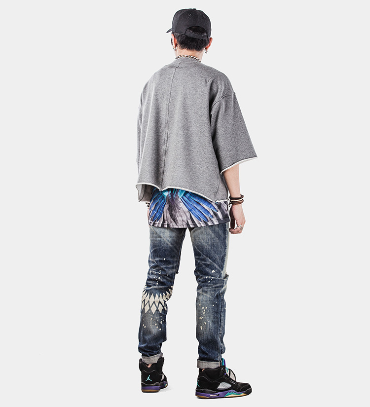 经典直筒版型对双腿毫无束缚,易穿大气。运用破洞工艺尽情释放不羁街头气息。融入独特的印花设计进一步提升了吸睛度,亮点十足,整体质感出色。