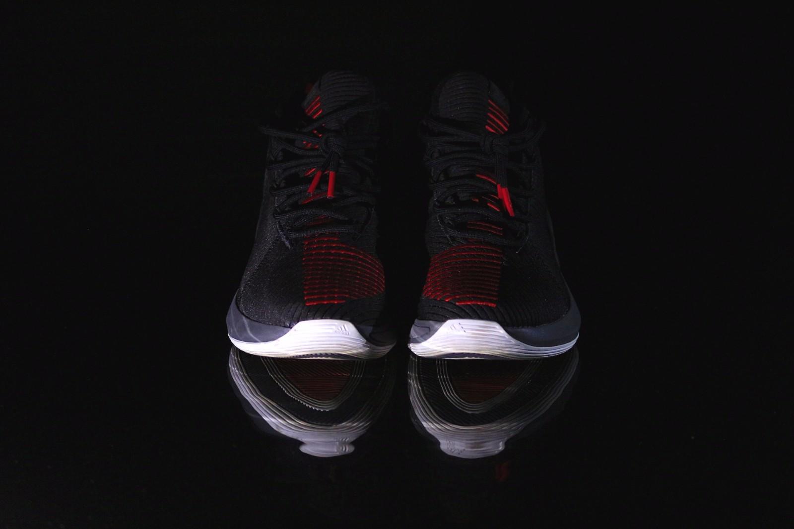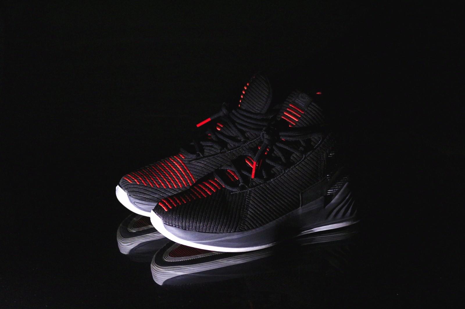罗斯9:针织鞋面,鞋面上横条刺绣增加整体支撑性,我购买的版本是经典的芝加哥黑红配色,不同朝向的刺绣虽然使用了同样的材料和编制技术,但是不同的纹理朝向很有时尚感,底部大面积的bounce大底给人厚重的感觉。