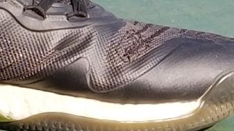 再说鞋底,祖传的阿迪大TPU,你甚至很难搬动她!前端的侧向防侧翻设计可能不够唯美,但是真的很让人安心,上脚就是一个字,稳!