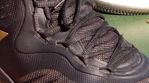 笔者更换了鞋带,否则真的拉不紧,而且原配的鞋带是圆形的,有很大的可能磨断,打球的时候如果不拉紧就没有包裹感,拉紧又容易拉断,即使小心翼翼也会因为多次摩擦而让鞋带扣拉丝。。。