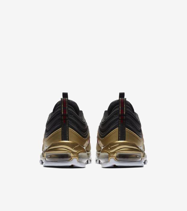 本季Nike Sportswear再添一组Air Max 97,眼前这双是其中之一。选择黑色作为鞋身主色调,搭配金属金色挡泥板及中底,再辅以校园红色Swoosh勾勒呈现。此款预计11月9日上市。