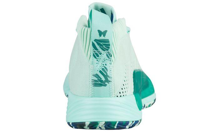 Damian Lillard的全新签名球鞋Dame 5提前披露多款配色实物。眼前这双以清新的薄荷绿色作为鞋身主色调,搭配迷彩纹理鞋底,后跟则有蝴蝶图案装饰。暂时未知确切上市日期。