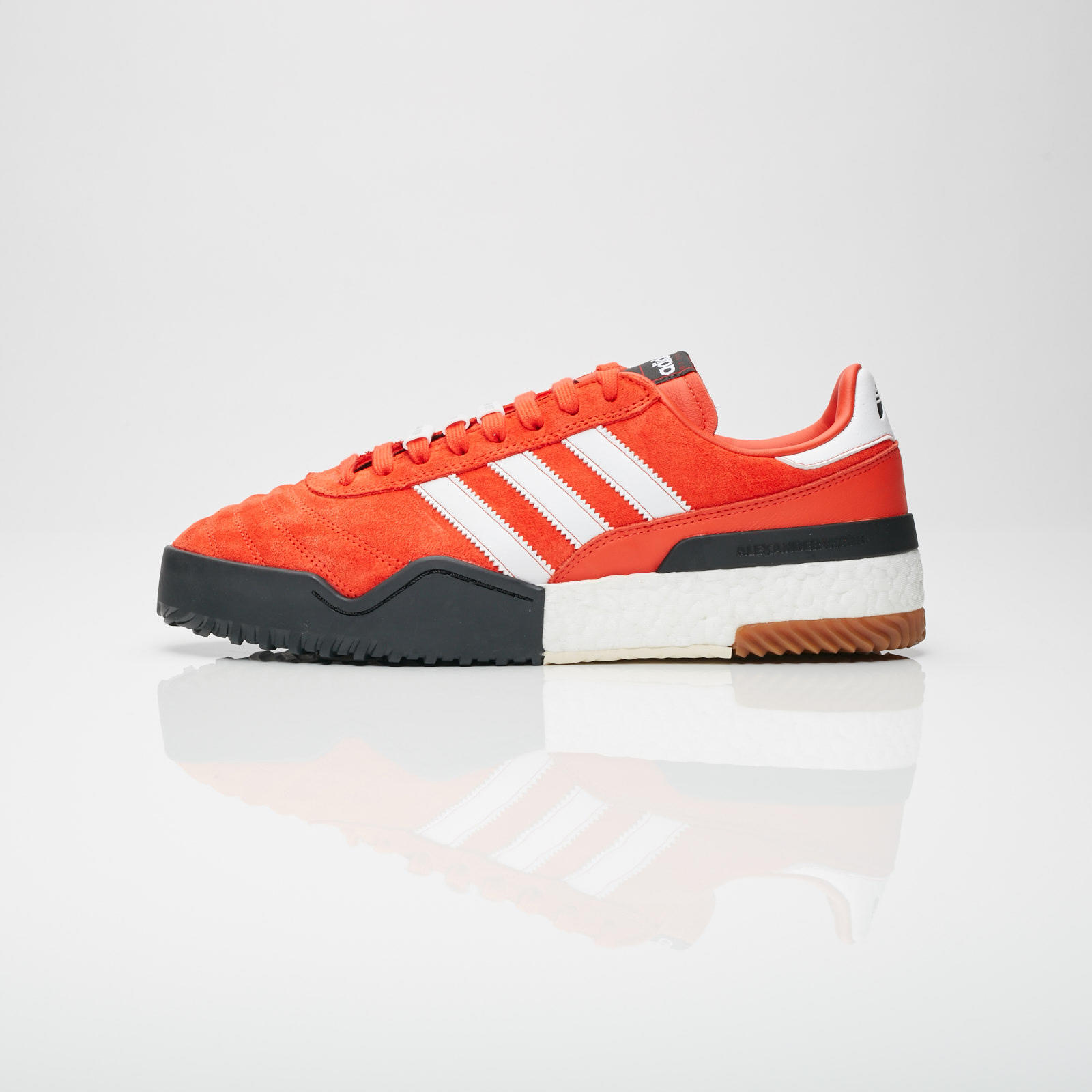 adidas 素来与知名设计师 Alexander Wang 相交甚好,近日他们再次携手合作以 adidas Originals Soccer Shoe 为蓝本,带来全新鞋履 Bball Soccer,分别以橙色和黑色为主打色,有趣的是此番的 logo 印记均为颠倒形状,只有从上脚者的角度查看才为正面。
