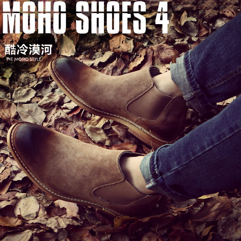 靴子非常简单,由鞋身鞋带处的2个孔和橡胶鞋底,也让沙漠靴整体感觉简约时尚且易于穿着。在鞋子材料的选择上选择优秀材质如猄皮或小牛皮,即可营造一种粗犷又优雅感觉,非常能彰显男人气质。加上羊毛袜和牛仔裤,效果非常好。
