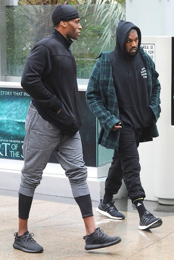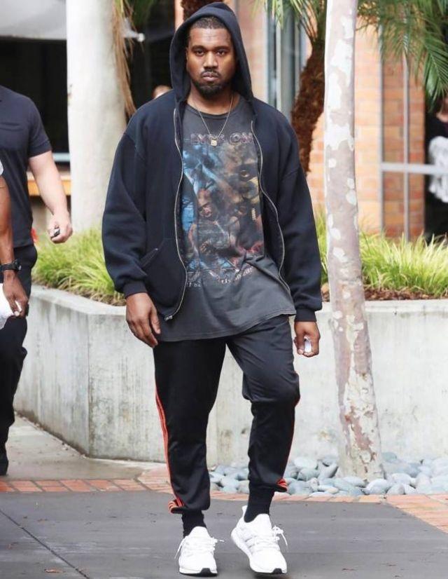 比起“Kanye带货”这个事件本身,这张图里Kanye的搭配更耐人寻味。上身Bomber+Hoodie+打底的层次穿搭可以说是2015年那会儿的标配,更有意思的是Kanye下身的搭配,除了短裤之外,为了配UB他还穿了一条压缩裤。