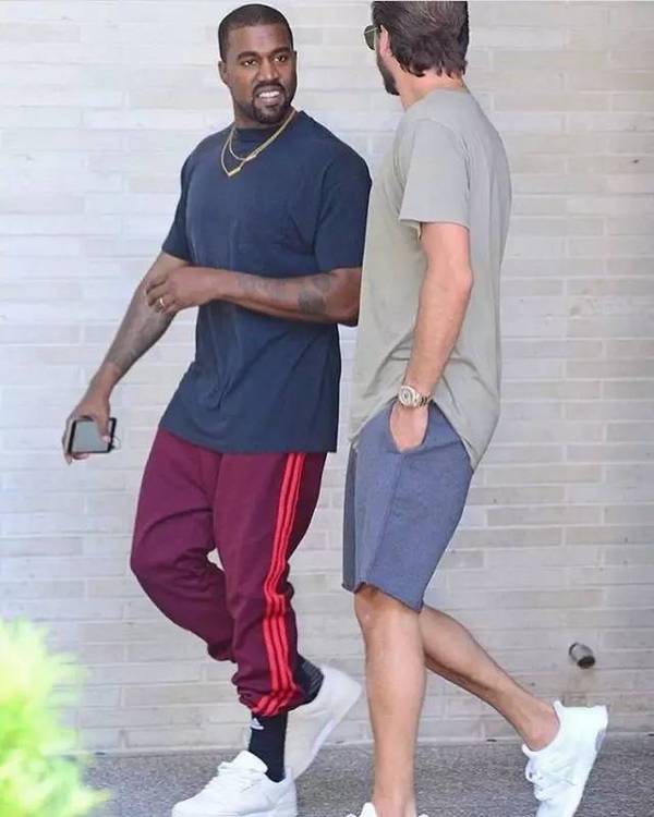 今年的校裤热大概是夏天被GD和侃爷带红的,还有人拿来做穿搭的比较。
