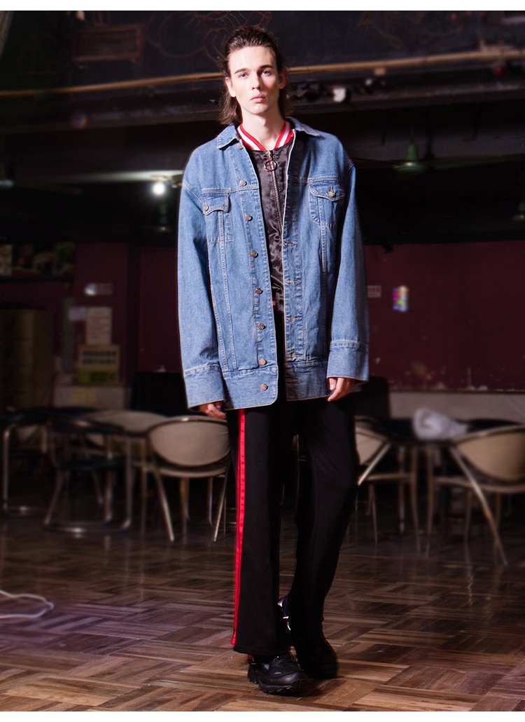 套上大衣以后立刻变得复古起来,all black搭配也一样因为这种骚气的裤型出彩。