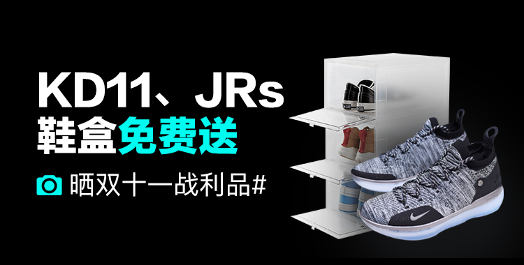“晒双十一战利品,送KD11”活动,现在进入评选阶段啦!本次活动收到将近2300位JRs的积极投稿!!感谢这么多位长得好看穿得帅的小哥哥小姐姐踊跃参加,让这个双十一充满仪式感!