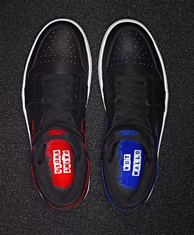 Nike SB x Air Jordan 1 "Lance Mountain"看上去与一般的Air Jordan 1 OG并无太多区别,仅仅鞋舌部分有NIKE SB的标志。但是从鞋盒拿出来后,你会有点怀疑是不是当时打包的人弄错了。这款内部联名天生就是鸳鸯配色,一只以黑红为主色调,另一只以黑蓝为主色调,一红一篮显得相当合衬。
