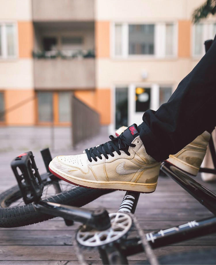 随着Jordan Brand的日益壮大,如今已不满足停留于篮球领域,进而将“魔爪”伸向了小轮车领域。与Nike已有多次合作关系的职业BMX运动员Nigel Sylvester 作为Air Jordan系列的忠实粉丝,此番携手Jordan Brand带来联名鞋款Nigel Sylvester x Air Jordan 1。鞋款将Nige Sylvester在运动中对Air Jordan 1的损耗作为灵感而采用了做旧处理——模拟氧化发黄的米黄色皮革鞋身、鞋面的划痕设计以及只留下泛白的轮廓和针孔以模仿开线脱落效果的Swoosh设计。