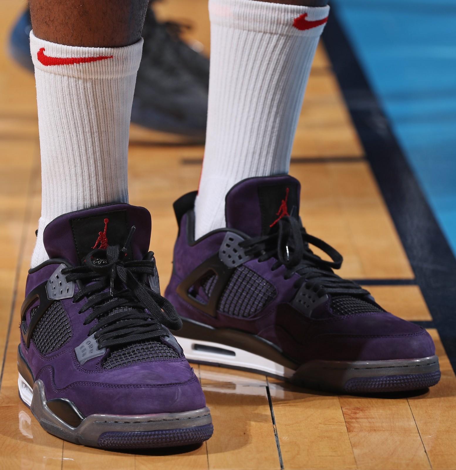 P.J.-塔克上脚亲友限定版本的紫色Travis Scott x Air Jordan 4