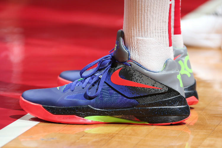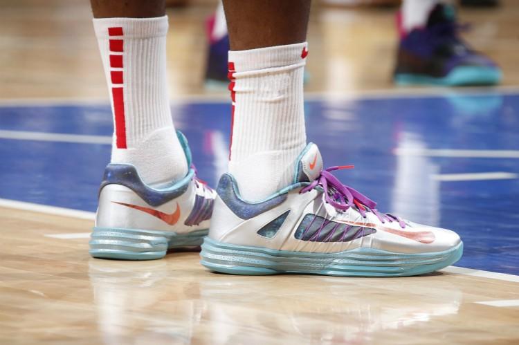 “场均三双”的P.J.-塔克先后上脚了Nike LeBron 8“South Beach”、Nike Hyperdunk X Low PE和Nike KD4 PE