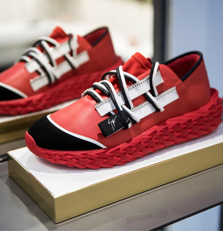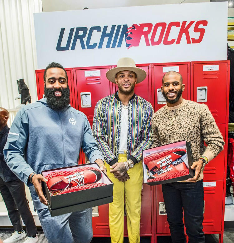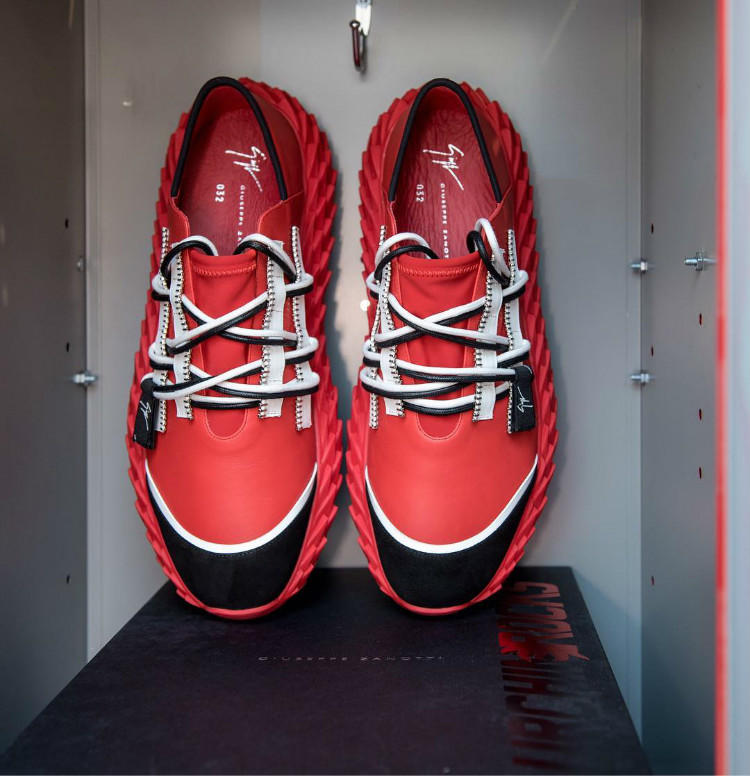 P.J.-塔克此番合作的对象并非其每场比赛穿着的Nike和Jordan Brand也不是Nike的老对手adidas,而是来自意大利的奢侈品牌Giuseppe Zanotti。鞋款发售活动的当天,詹姆斯-哈登、克里斯-保罗、“大魔王”周琦等一众火箭队球员也悉数前来捧场。