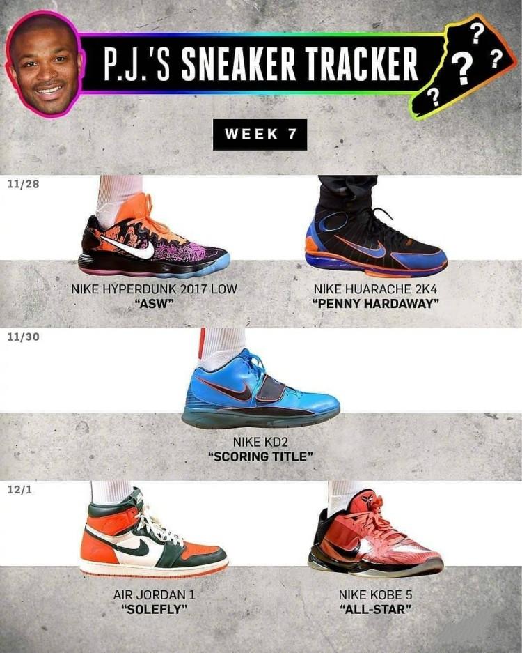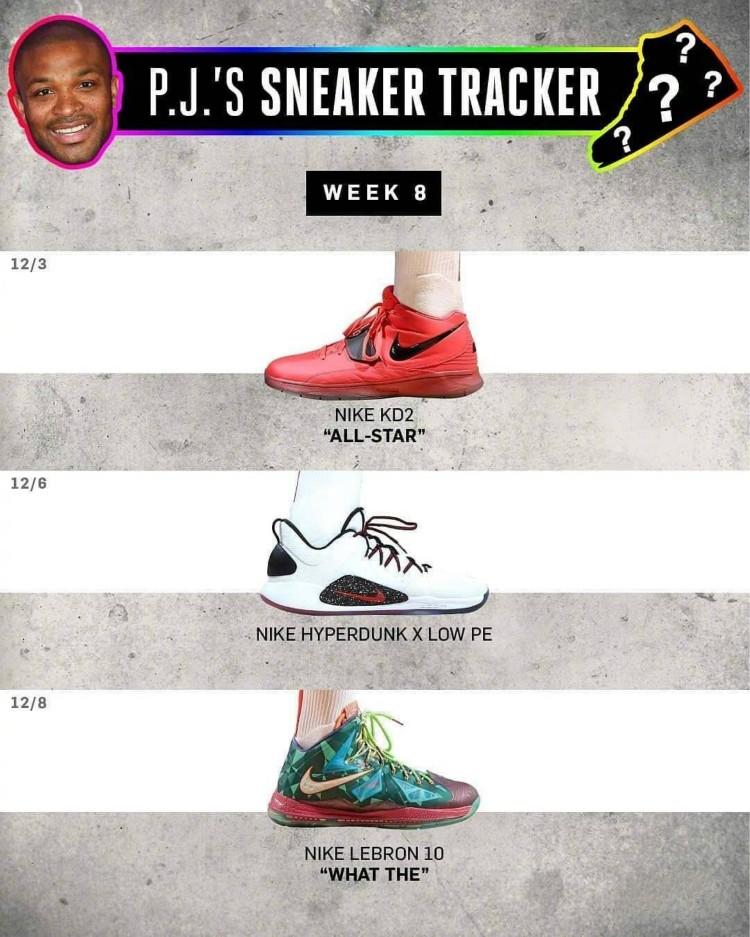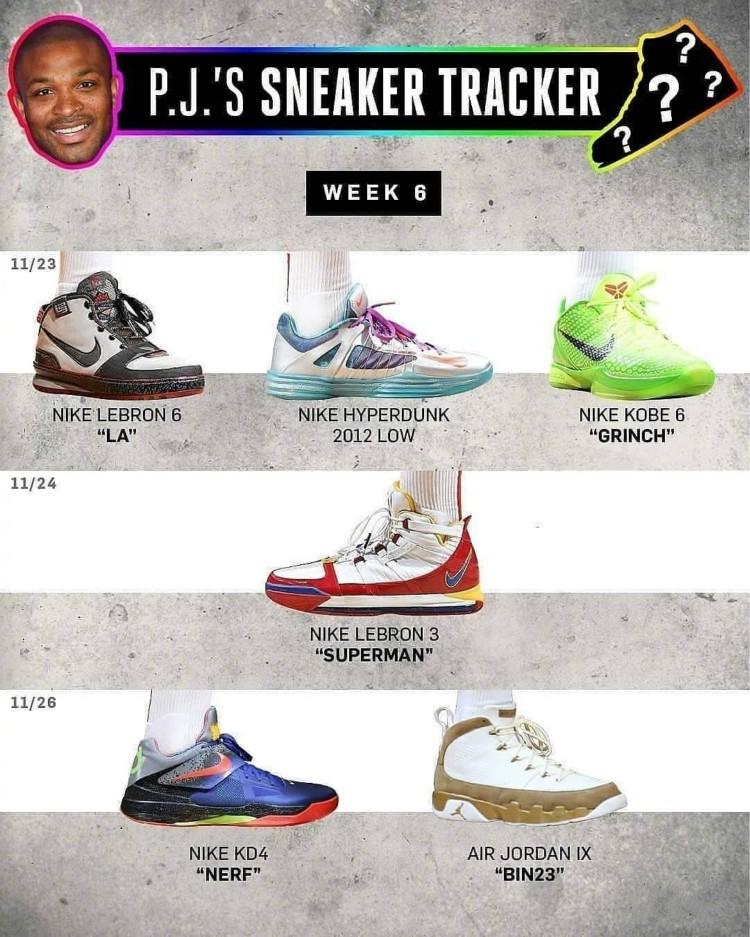 “场均三双”的P.J. Tucker上脚Nike Hyperdunk 2012 Low PE 、Nike LeBron 6“LA”、Nike Kobe 6“Grinch”