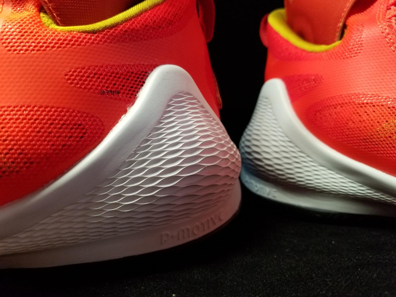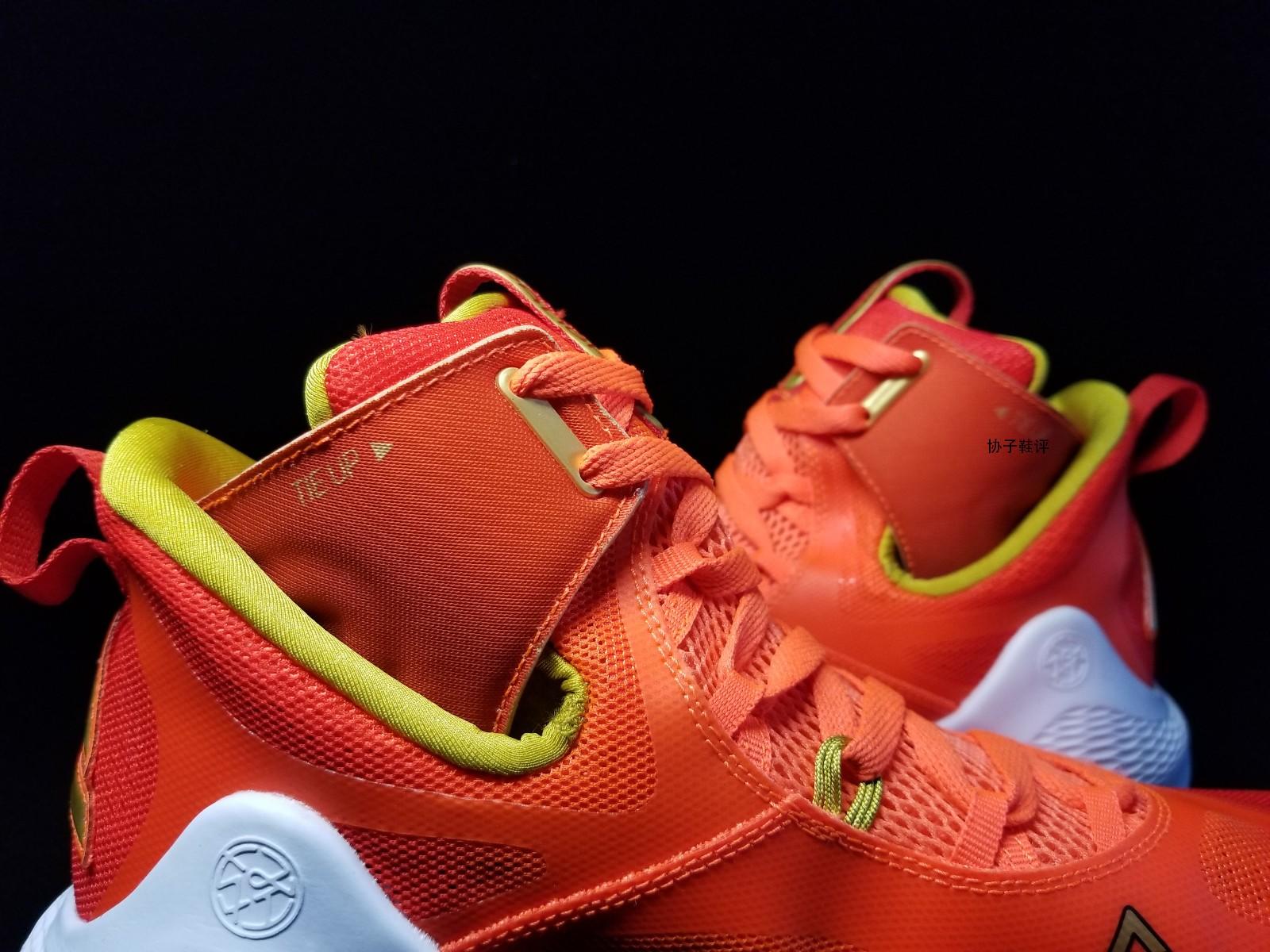 第二双呢,也是小伙伴们介绍的,匹克轻势二代先看外观,这双鞋子外形上最大的特点就是这个卡戴珊式的大屁股,以至于从后面看起来有种怪怪的感觉,配色采用橙色白色为主色搭配黄色点缀,这个配色跟宣传图上的感觉不一样,比我想象中要更加的鲜艳,这个配色也是挺骚气的,看起来就跟橙子一样,但是!奇怪的是不大好看的鞋型加上不大好看的配色,我竟然觉得它还挺好看的,就跟我一样就是那种丑帅丑帅的感觉你懂吧?