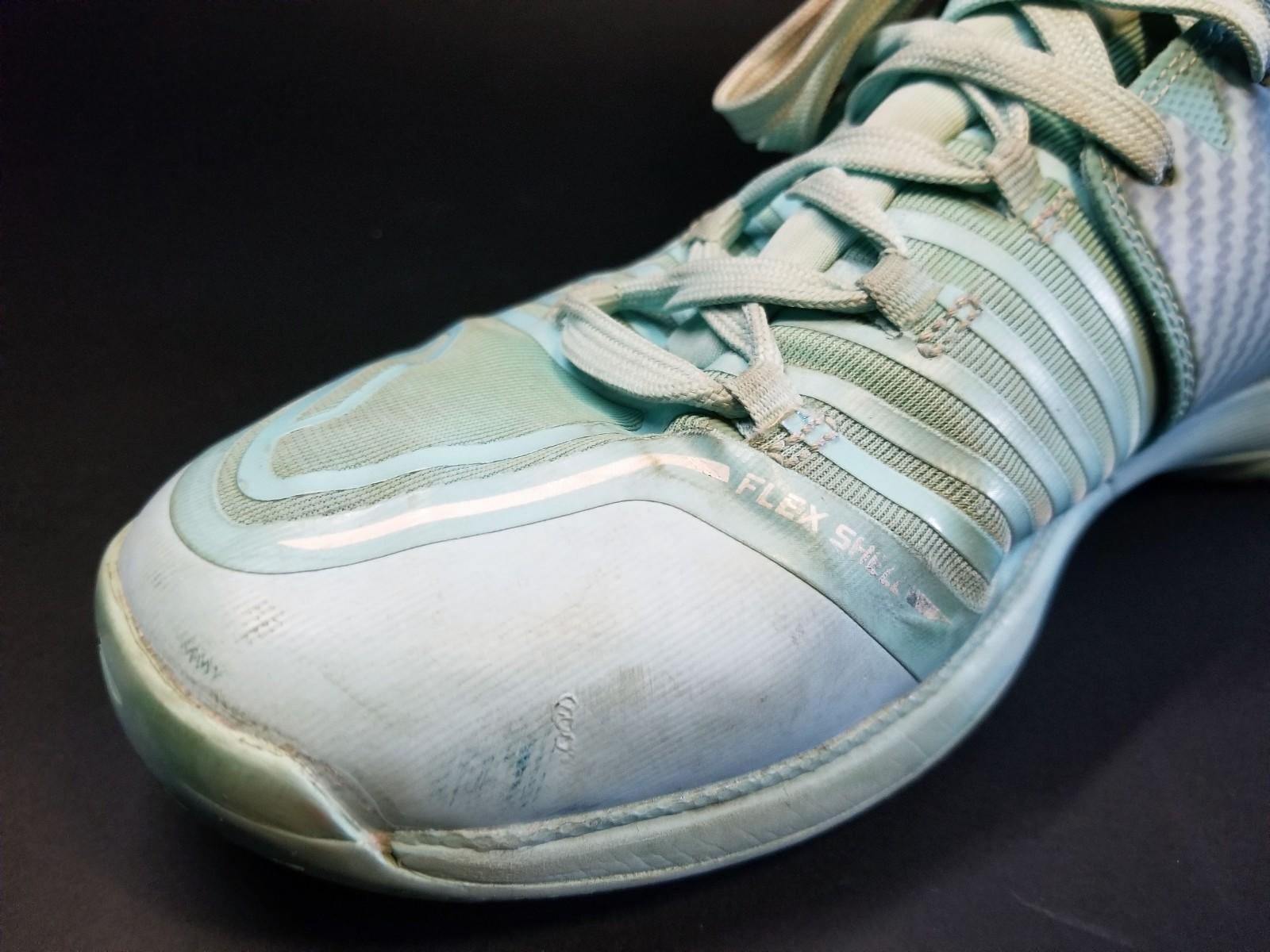 第五双,是一双以及被我糙的不像样的鞋子了,李宁闪击1这双鞋子,应该是我对李宁的设计第一次感到刮目相看的鞋子,外观其实不用多说,就单单是整体的薄荷绿的颜色,试问这谁抗得住啊?然后搭配银色的超大logo,加上这个鞋型简直无可挑剔!别看现在旧了,新的时候是非常好看的~