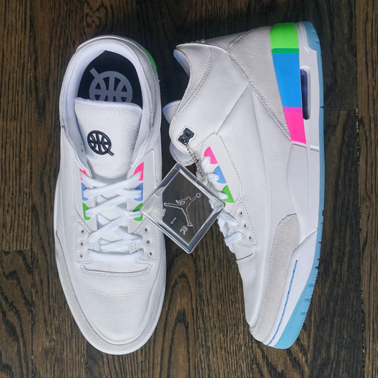 当一年一度的巴黎街球锦标赛Quai 54遇上Air Jordan 3代鞋型的三十周年,作为该项赛事赞助商的Jordan Brand自然带来以Air Jordan 3鞋型为蓝本打造的Quai 54别注。除了一双在沉稳的黑色背景下以粉、蓝、绿三色多彩细节点缀的市售版本Air Jordan 3“Quai 54”之外,还有一款“贾老板”Justin Timberlake亲着上脚的亲友限定版Air Jordan 3“Quai 54”,不仅取消了Air Jordan 3代鞋型标志性爆裂纹设计,还以彰显运动活力的白色优质皮革覆盖鞋身,鞋款整体更显清新明快!