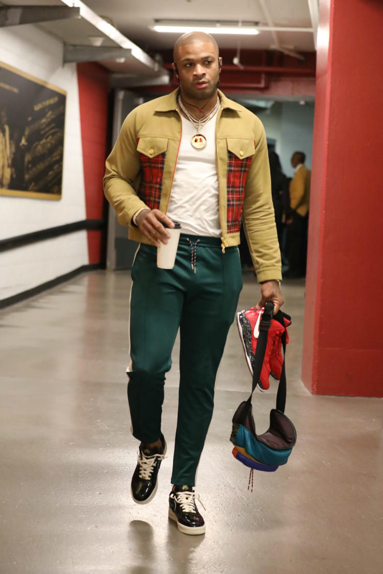 P.J.-塔克上脚Tom Sachs x Nike Mars Yard Overshoe,手上拎的是天价鞋款Nike LeBron 6“Stewie Griffin”