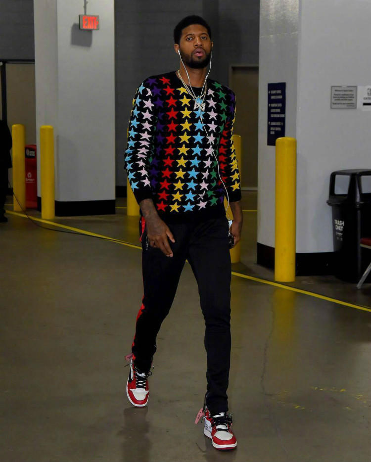 保罗-乔治上脚OFF-WHITE x Air Jordan 1“Chicago”