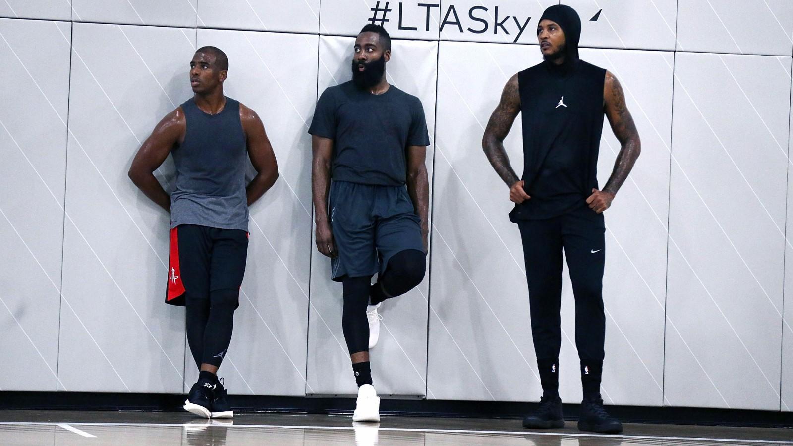 2018年休赛季,达里尔 · 莫雷以一份顶薪合同留下了队中的首发控卫,又以底薪合同揽来了被老鹰裁掉、一心“入火”的安东尼,CP3 和 Melo 以及詹姆斯 · 哈登的“安灯泡”组合看上去无比美好。更何况詹韦合作已经两冠在手,球迷们自然希望“风尘四侠”中的另外两位也能擦出火花,竞逐奥布莱恩杯。