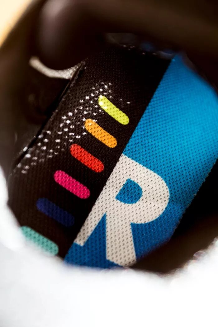 左右脚用 L、R 字母显示,鞋垫衬布特别选用透气网面包覆,这点非常少见,也很独特。
