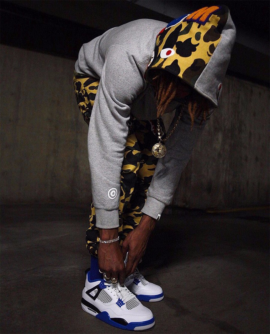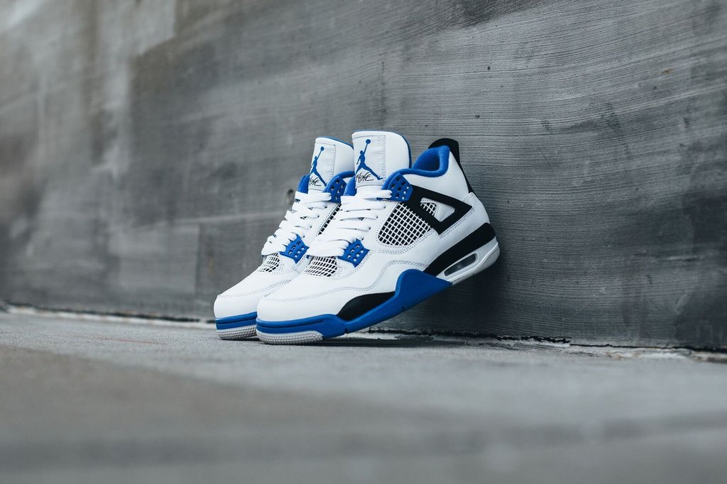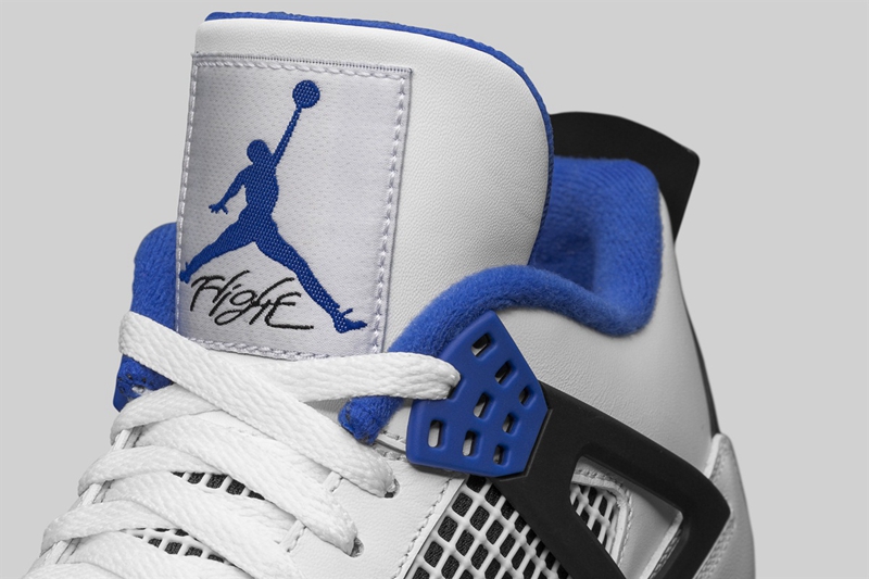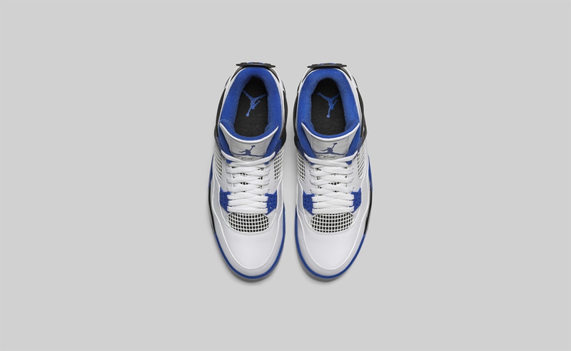 Air Jordan4"Motosport"灵感来自于乔丹摩托车队,此前推出的Motosport并没有市售,只赠与过摩托车队的车手以及亲友。此次发售的Motosport配色采用了与元年同样的配色设计,后跟处取消了元年版本的Mars头像,配色清爽富有运动感。蓝白配色的AJ4运动中不失潮流的感觉,绝对是夏季出门的好选择。