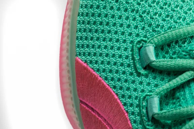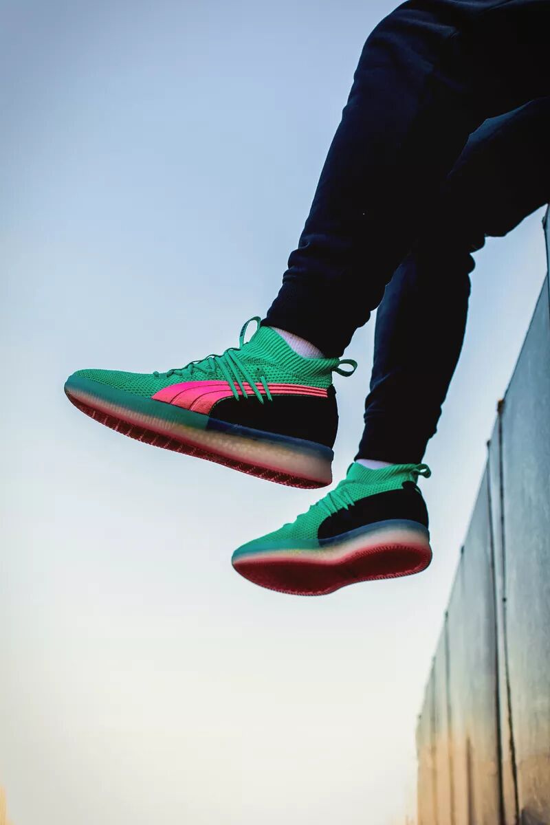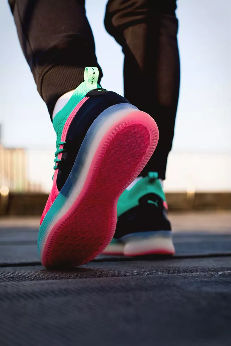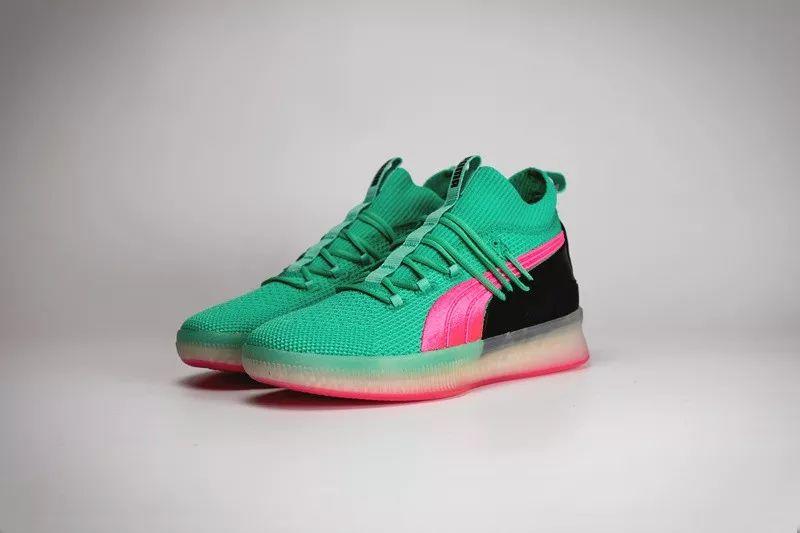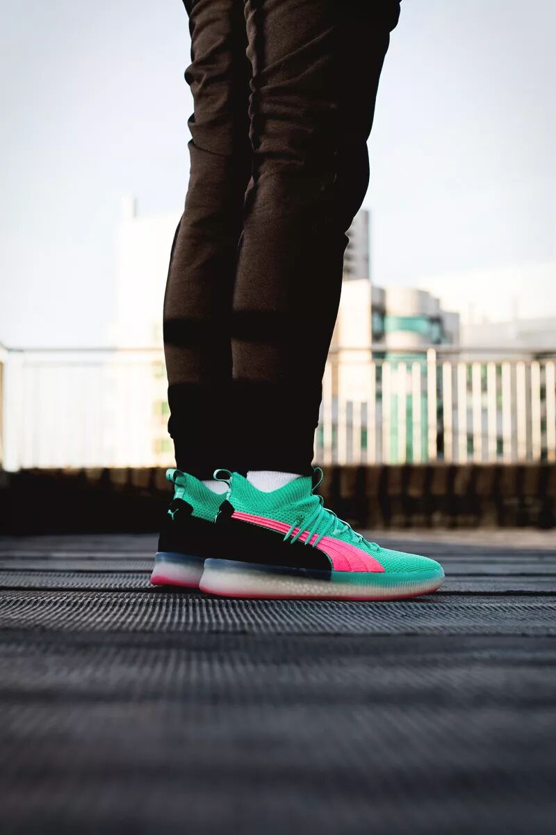 这次以配色风骚著称的 PUMA Clyde Court 就带回了这种色调。大面积湖水绿鞋面搭配粉色 Logo 和外底,带来浓郁南海岸风格。