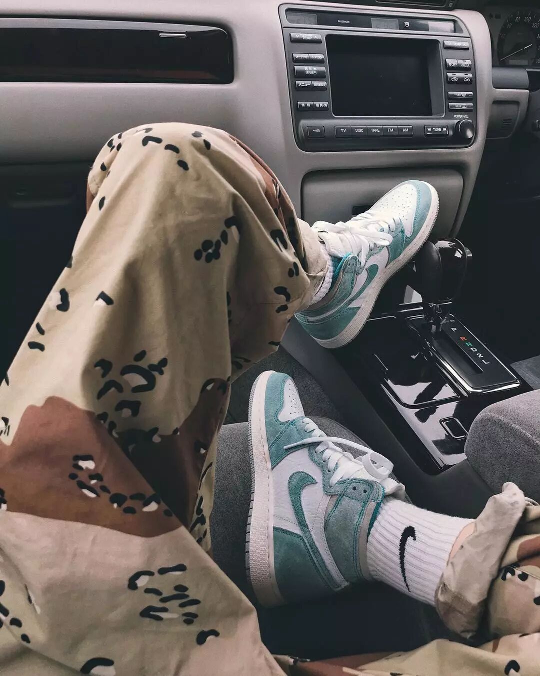 再说说 GS 版本,麂皮湖水绿 AJ 1 具备男女通吃的特性,某些鞋码接近 4k,再次考验女鞋头的剁手上限。