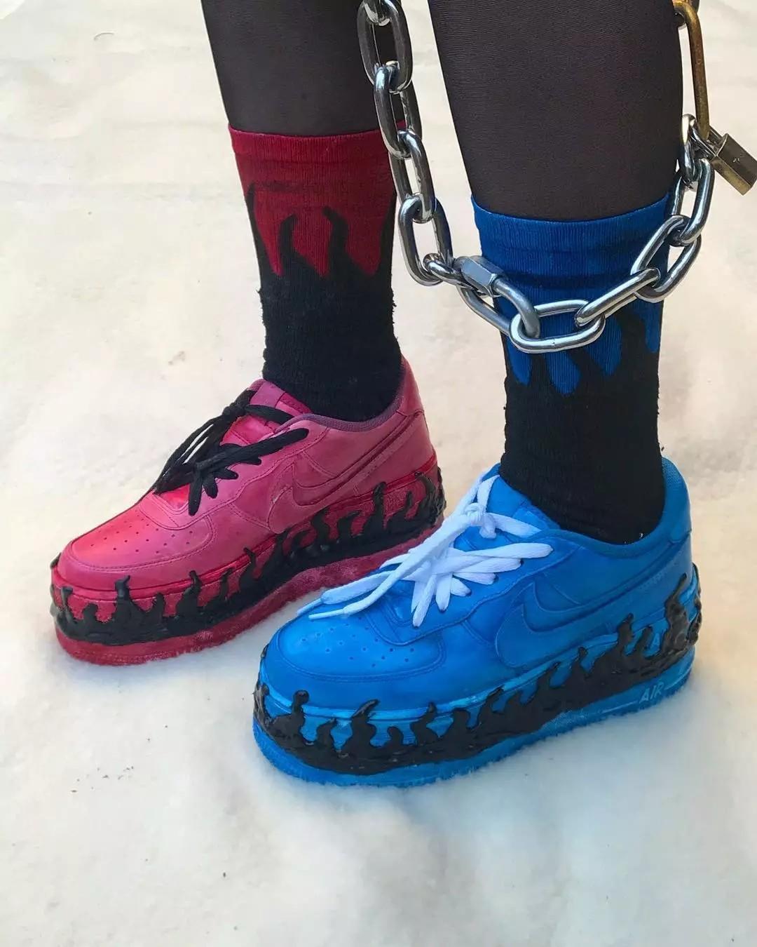 例如类似于 Instagram 上由设计单位 @Val Kristopher 创作的这双将两个 Air Force 1 鞋底重叠在一起的设计,先不说究竟能否真正上脚,不过从视觉效果上来说还是比较容易让人接受的,觉得有点普通?如果你喜欢重口味,那当然还有更夸张的…以下请自行欣赏(因为我也实在没有词汇可以形容了…):