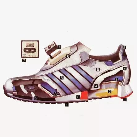诞生于 1984 年洛杉矶奥运会的 adidas Micropacer 被誉为 “世界上第一双科技跑鞋”,其中把电子器件与鞋身结合,加入微处理器以提供电子计步的功能是它设计上的最大亮点。
