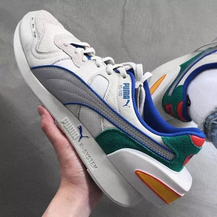 在推出复刻的同时,Puma 品牌邀请了韩国时尚当红品牌 Ader Error 推出了这款造型神似的 RS-100,以丰富的色彩取代白银灰的经典配色,不过 RS-100 只是借鉴了外型,鞋款上并没有装载 Running System,但这也无碍它成为不少朋友眼中的 2018 年最佳 puma 鞋款。