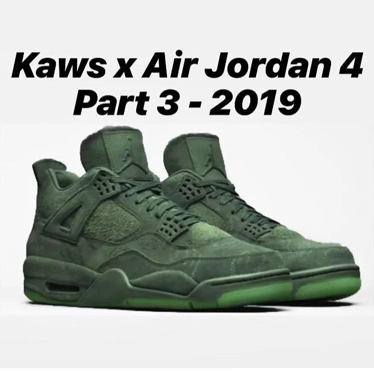 ▲据闻今年的 KAWS x Air Jordan 4 会使用绿色