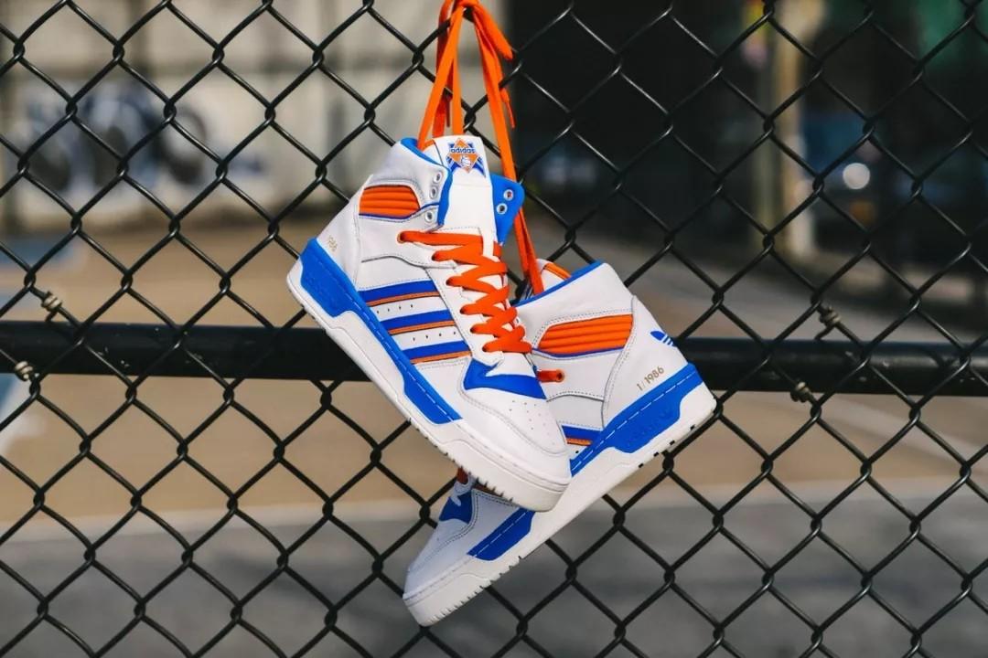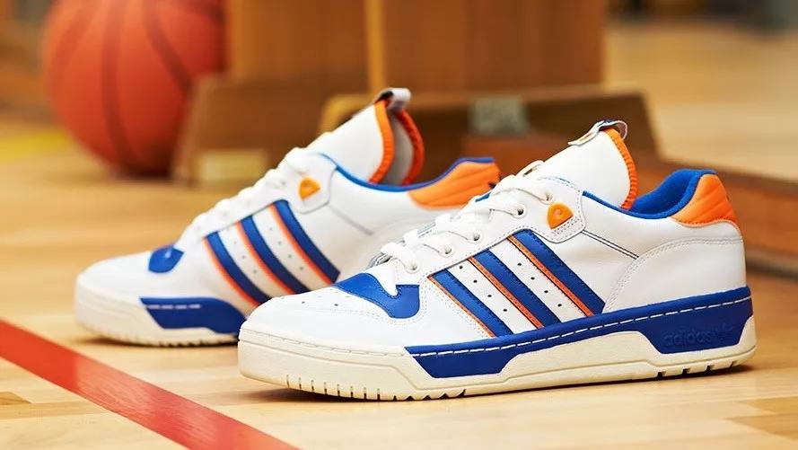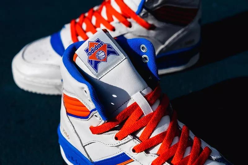这双 Eric Emanuel "New York" adidas Rivalry Hi 不仅保留了 80 年代最初的复古造型,而在配色方面更是采用了纽约尼克斯队的配色,很好的致敬了当年这支篮球队伍。